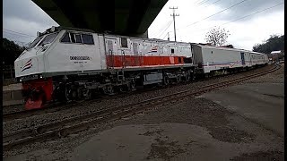 VIDEO PAPASAN KERETA API BBM DENGAN KERETA API PENUMPANG DI PERLINTASAN KERETA API BAYANGAN DIBAWAH FLY OVER KRETEK ...